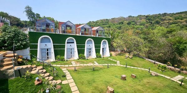 Our rooms are designed with your comfort and relaxation in mind. They feature modern amenities and natural elements that create a perfect balance for a peaceful stay. You can choose from various categories like cave rooms, luxury glass roof cabins, and tree houses, each with its unique features and high-tech amenities. What's more, the resort is located just 10 minutes away from famous beaches like Baga, Anjuna, and Vagatore, with twinkling colorful markets of Goa around the corner from our resort. You can also enjoy a 2-minute walk to Club Cabana and 5-10 min drive to many other famous clubs.